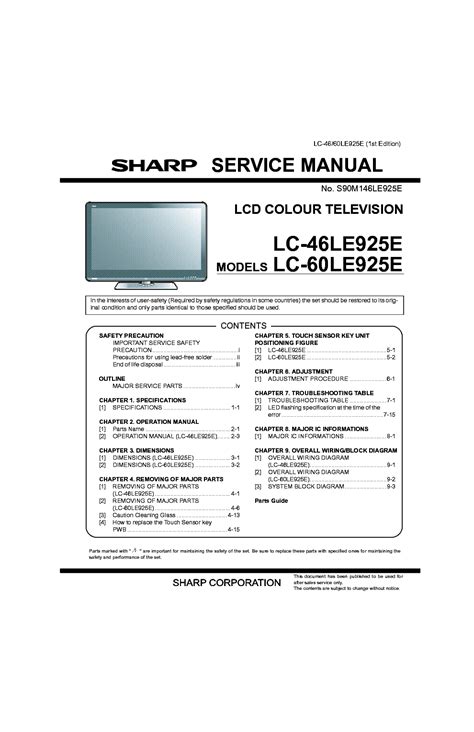 Presently you are looking for an Sharp Lc 60le925e 46le925e Service Manual Repair Guide example that we provide here in some form of document formats such as PDF, Doc, Energy Point, as well as images that will make it simpler for you to create an Sharp Lc 60le925e 46le925e Service Manual Repair Guide yourself. For a more clear look, you are able to open several examples below. All the illustrations about Sharp Lc 60le925e 46le925e Service Manual Repair Guide about this website, we get from a number of sources so you can create a better file of your own.